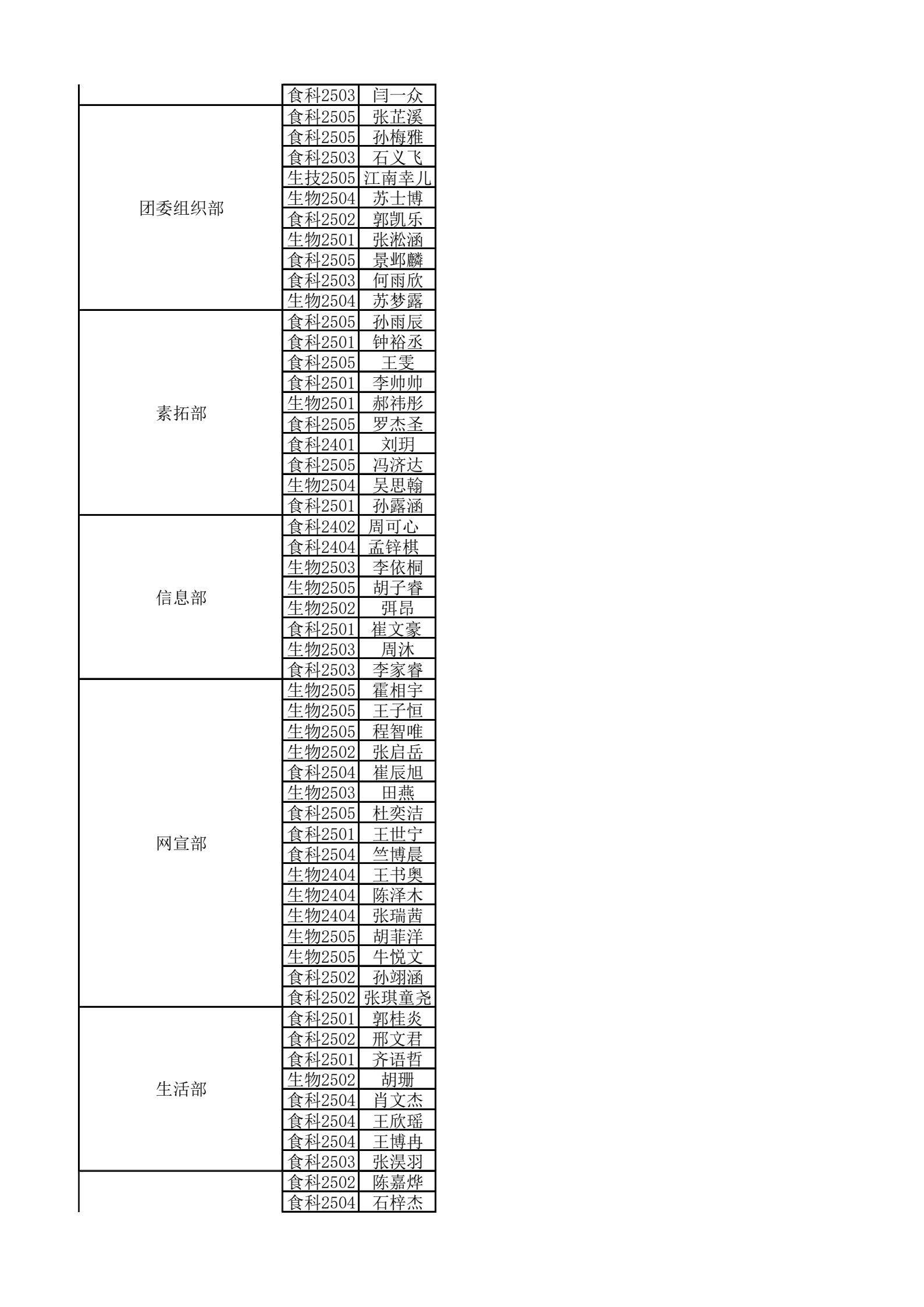 河南工业大学国国际教育学院25届学生会干事名单已确定,现予公布。