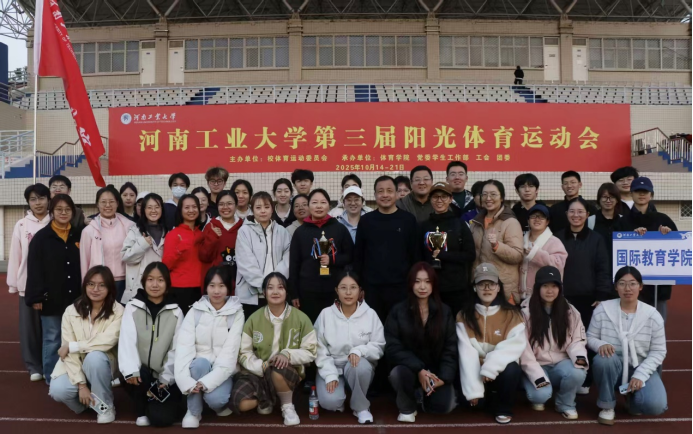 10月21日下午,河南工业大学2025年阳光体育运动会在东操场隆重开幕。国际教育学院教职工代表队以饱满的精神面貌积极参与各项赛事,充分展现出团结协作、奋发向上的集体形象,成为赛场上一道亮丽的风景线。