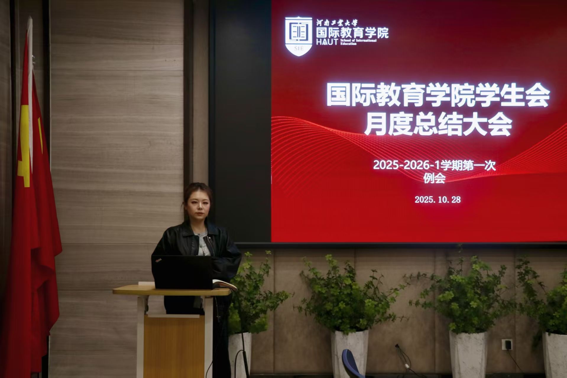 2025年10月28日,国际教育学院学生会在6254会议室成功召开2025-2026-1学期第一次月度总结大会。学院团委书记李程、第二十三届学生会主席团全体成员、各部门部长及部委代表出席会议,回顾九、十月工作成果,谋划下一阶段工作方向。