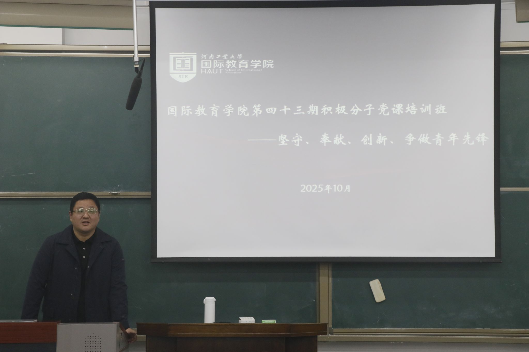 本次入党积极分子培训班顺利开班,拉开了国际教育学院2025年秋季入党积极分子培训的帷幕。此次党课培训将结合时事热点和党性教育,通过理论传授、实践调研、小组讨论等形式,以实际行动帮助入党积极分子向党组织靠拢。未来,国际教育学院党委也将继续坚持以习近平新时代中国特色社会主义思想铸魂育人,为培养担当民族复兴大任的时代新人筑牢政治根基。