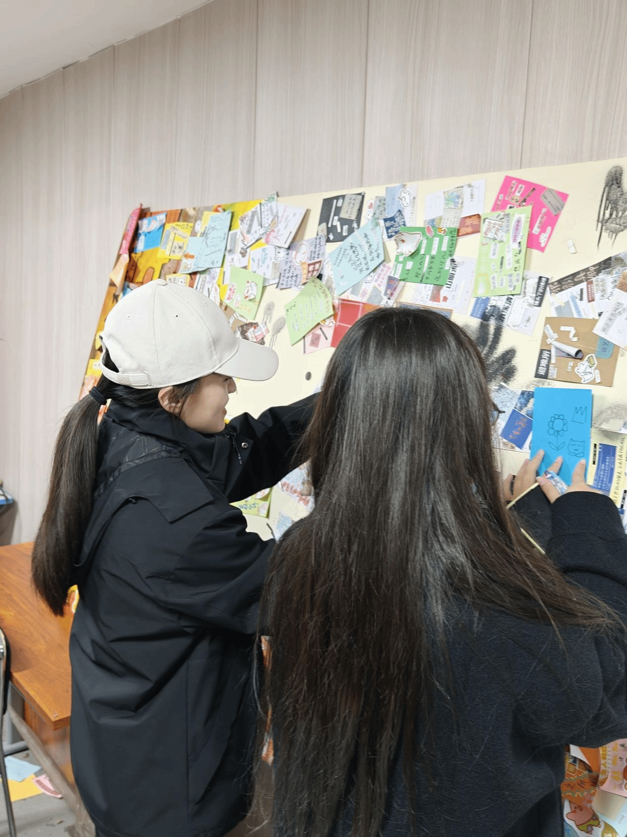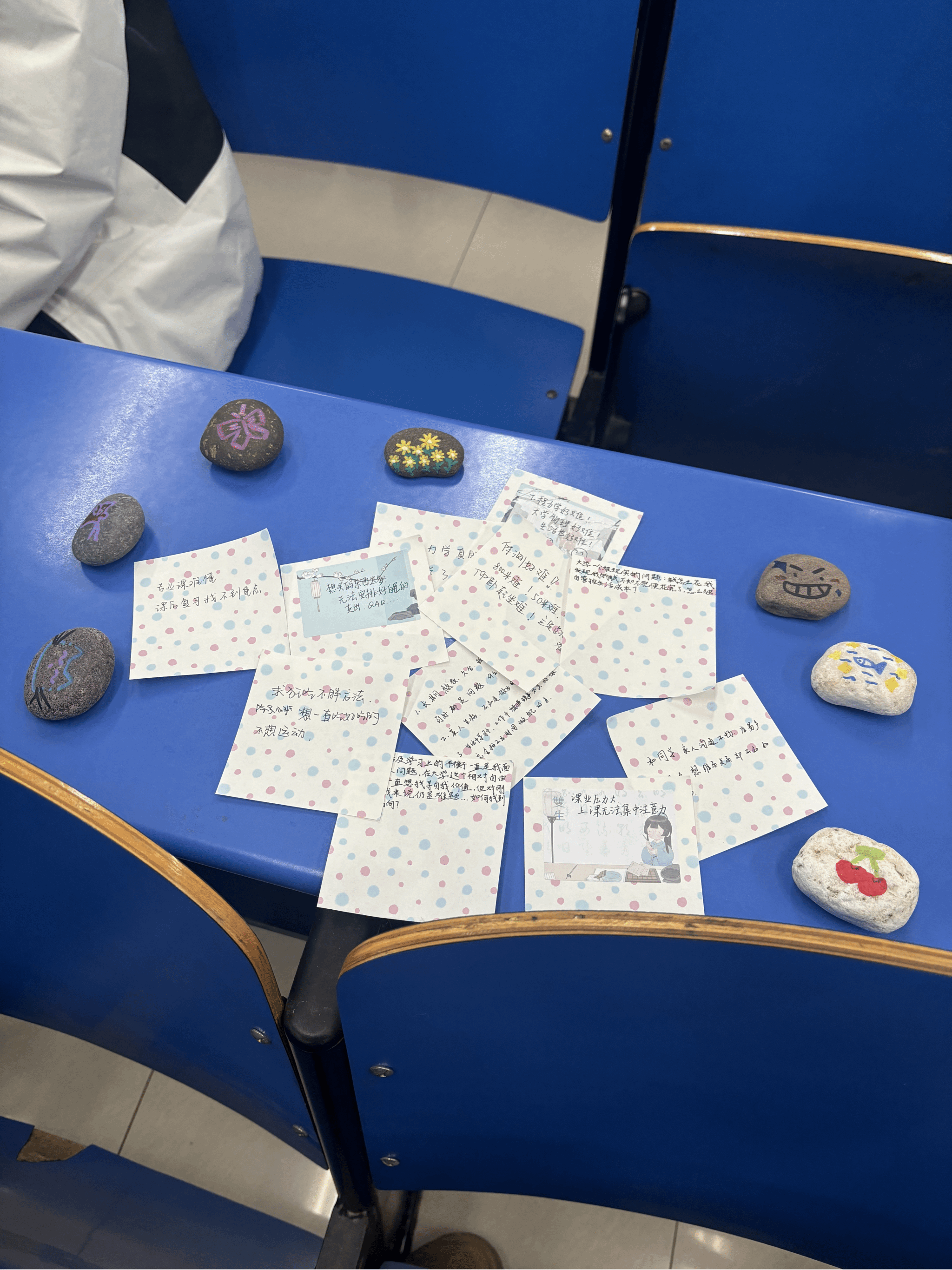 美育延伸活动“美好能量交换站”充满治愈感。同学们带着“心情手账”“创意画作”而来,将烦恼化作笔尖色彩,再抽取他人的“暖心寄语”带走,每一份创意表达都收获温柔回应,在审美体验中涵养心境、治愈心灵。