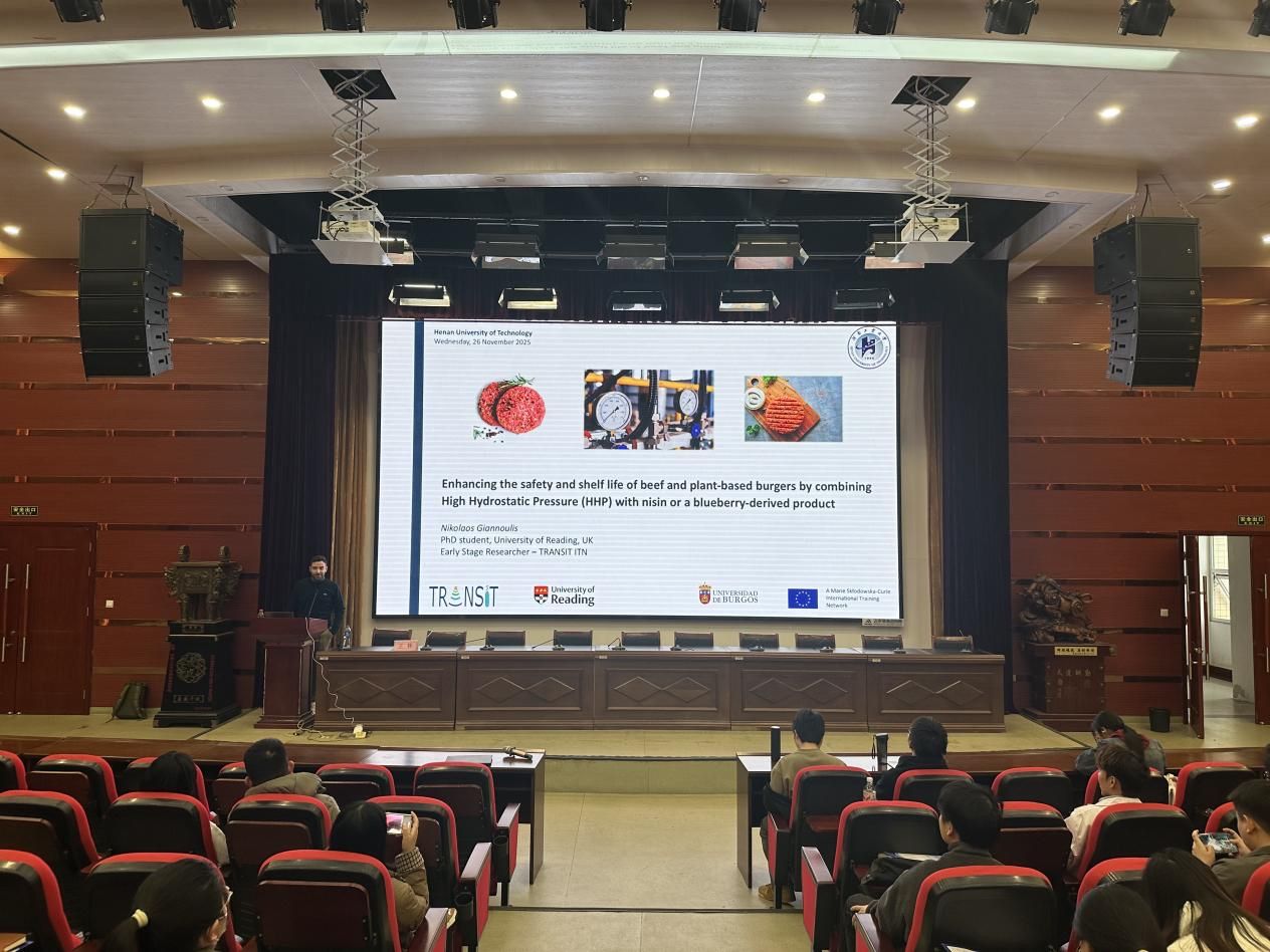 2025年11月26日下午,国际教育学院联合粮油食品学院在8号楼8527会议室举办了“融合•创新”国际学术交流沙龙第二十九场活动。本次活动邀请了雷丁大学中外合作办学项目授课教师Nikolaos Giannoulis进行学术报告,来自各学院的70余名师生参加了本次活动。