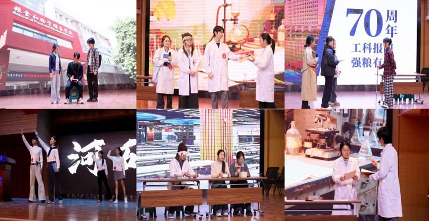 本次大赛以“校史”为纽带,以戏剧为桥梁,经过初赛选拔,来自6个学院的优秀参赛队伍会师决赛。经济贸易学院《麦田里的守望》诠释粮食产业的坚守底色,新闻与传播学院《七秩弦歌,薪火为诗》以文艺笔触抒怀七秩办学传承,国际教育学院以《七秩粮心》《跨越时空》串联校庆节点与粮油脉络,粮油食品学院《一碗面的光阴》由一碗面引起对先辈劳动的追溯,藏尽烟火里的生活温度,环境工程学院《粮缘·工梦》则勾连起粮油事业与学校梦想的双向奔赴,明德书院《河碑》叩响与学校的岁月回响。舞台上,选手们全情投入,以真挚的情绪、默契的配合与灵活的应变,生动演绎七十载办学征程中的动人片段与新时代青年的使命担当,用精彩表演为校庆献礼,以青春风采为学校七十华诞增添了亮丽色彩。