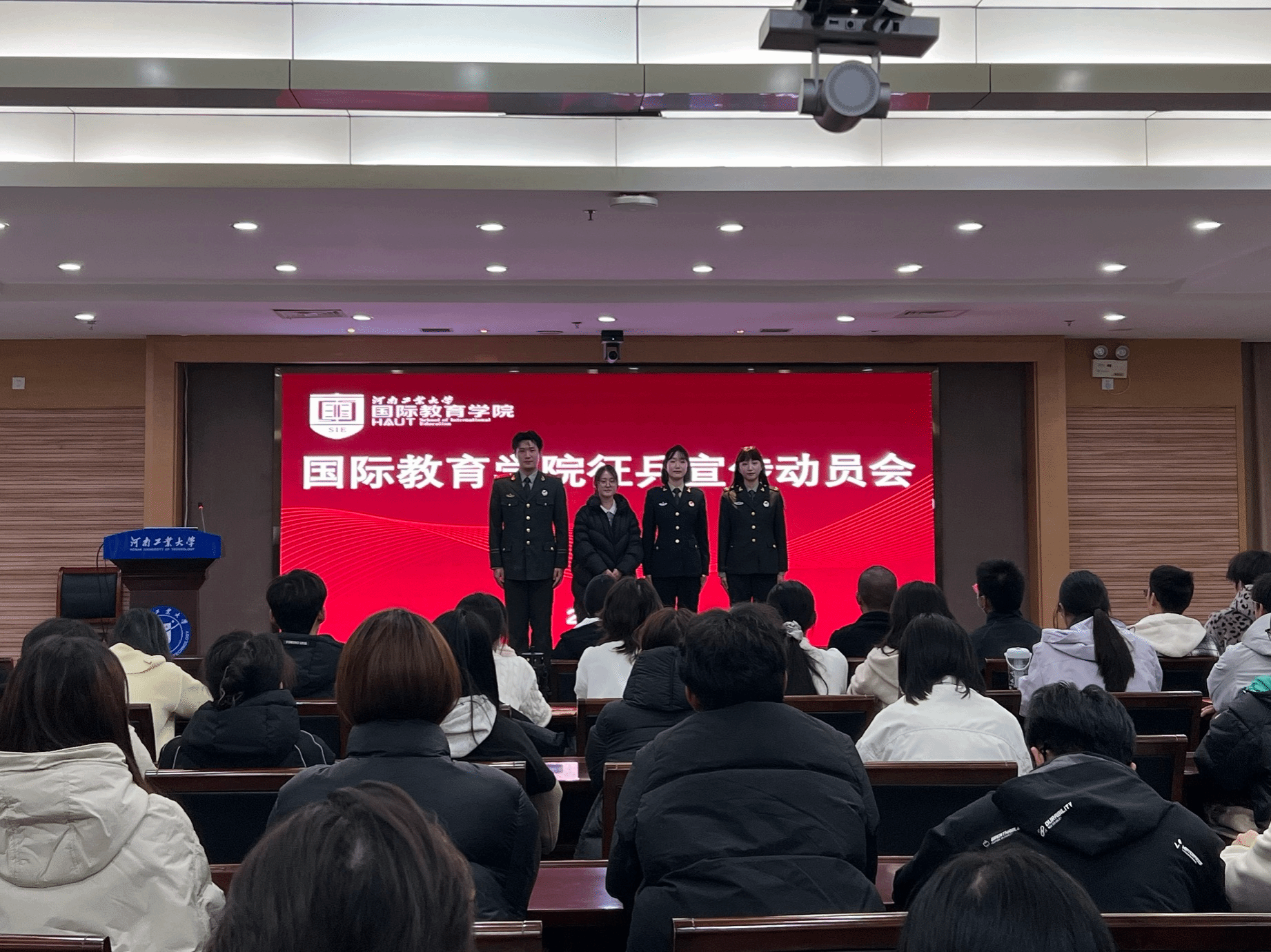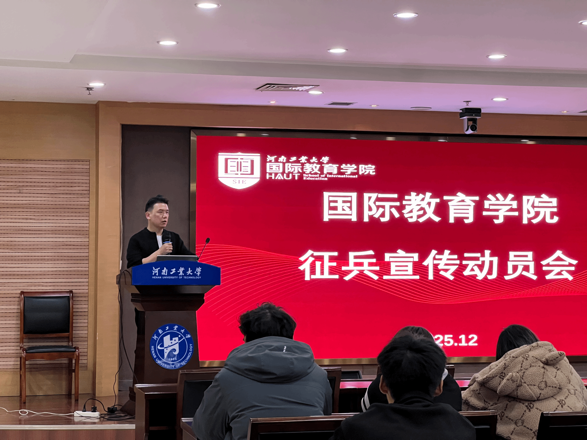为积极响应国家号召,激发青年学子投身国防事业的热情,12月9日下午,国际教育学院于行政楼102会议室隆重举行2025年大学生征兵入伍宣讲会。学院全体辅导员以及有应征入伍意向的学生齐聚一堂,共同参与此次意义非凡的会议,会议由鲁鹏主持。