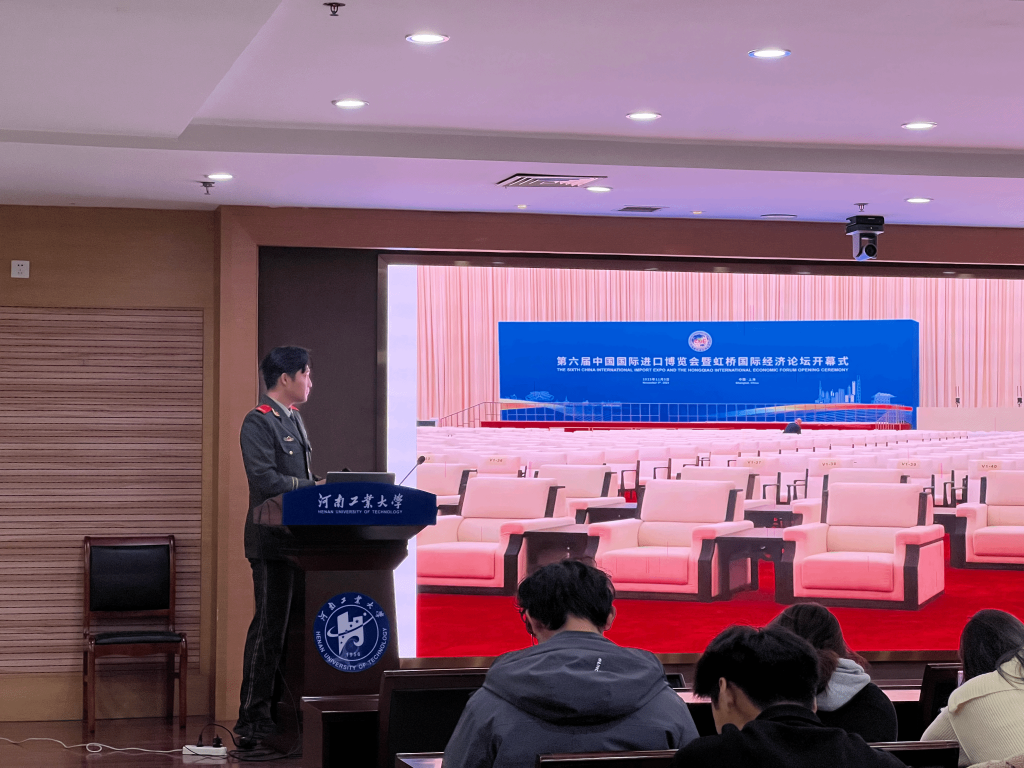 随后,学校武装部征兵宣讲团的三位成员依次登台分享。他们分别是来自国际教育学院23级的郭雨梵、粮油食品学院21级的陈勇以及国际教育学院23级的王伊帆。三位宣讲团成员结合自身真实的军旅经历,从入伍的初心萌动、丰富多彩的军营生活,到收获满满的成长蜕变等多个方面,为在场同学勾勒出一幅幅真实而鲜活的军旅画卷。他们还围绕大学生入伍的各项优惠政策、多元的发展路径以及退役后的妥善安置等内容,进行了深入细致的解读,进一步坚定了同学们参军入伍的信心与决心。