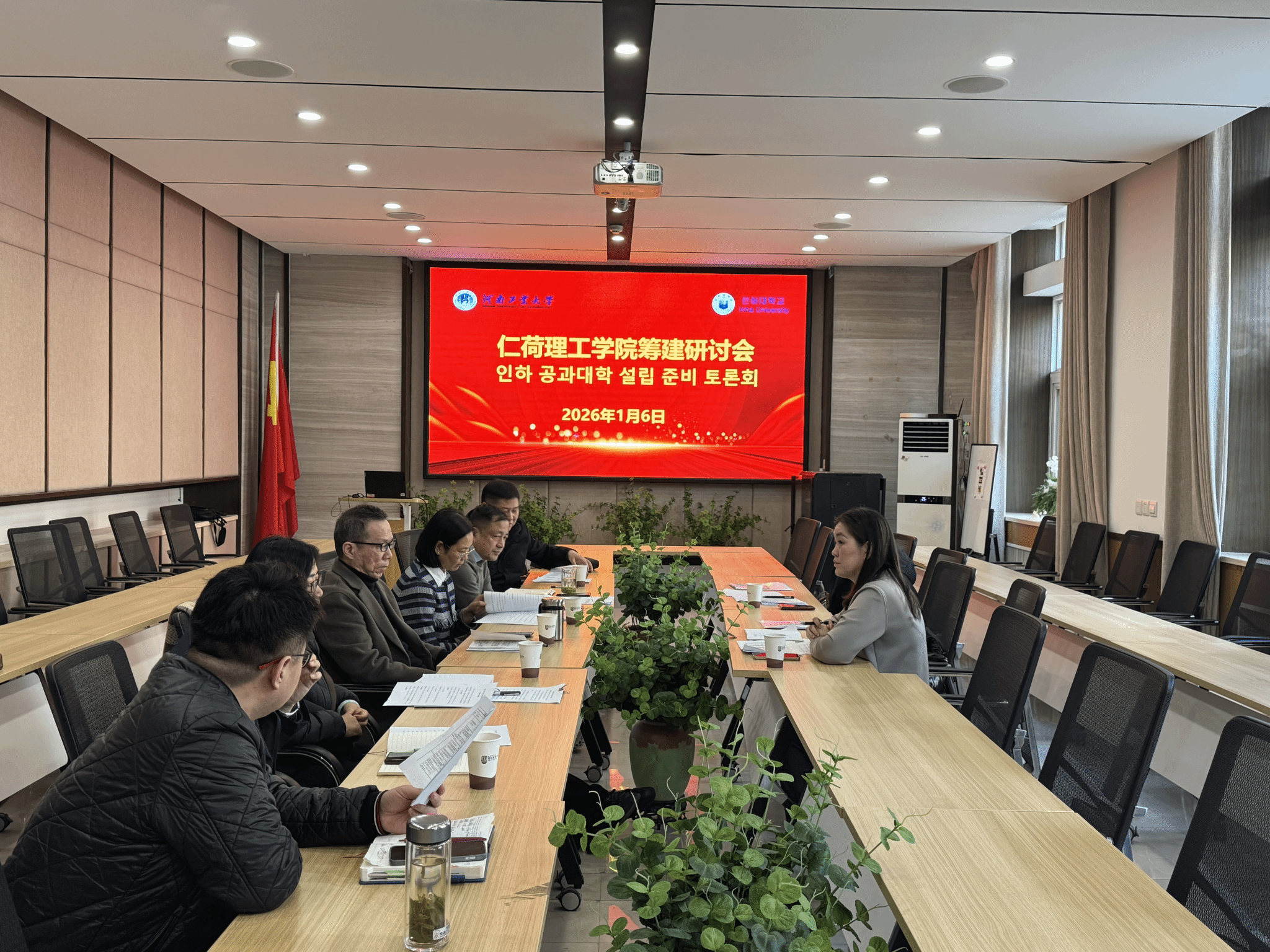 1月6日上午,仁荷理工学院建设推进会在仁荷理工学院6254会议室顺利召开。韩国仁荷大学国际教育中心中国中心主任张秀丽、副主任张素文,河南工业大学财务处处长于亦文、生物工程学院院长胡元森,以及国际交流与合作处、信息科学与工程学院、化学化工学院相关同志参加会议,会议由仁荷理工学院院长张浩军主持。