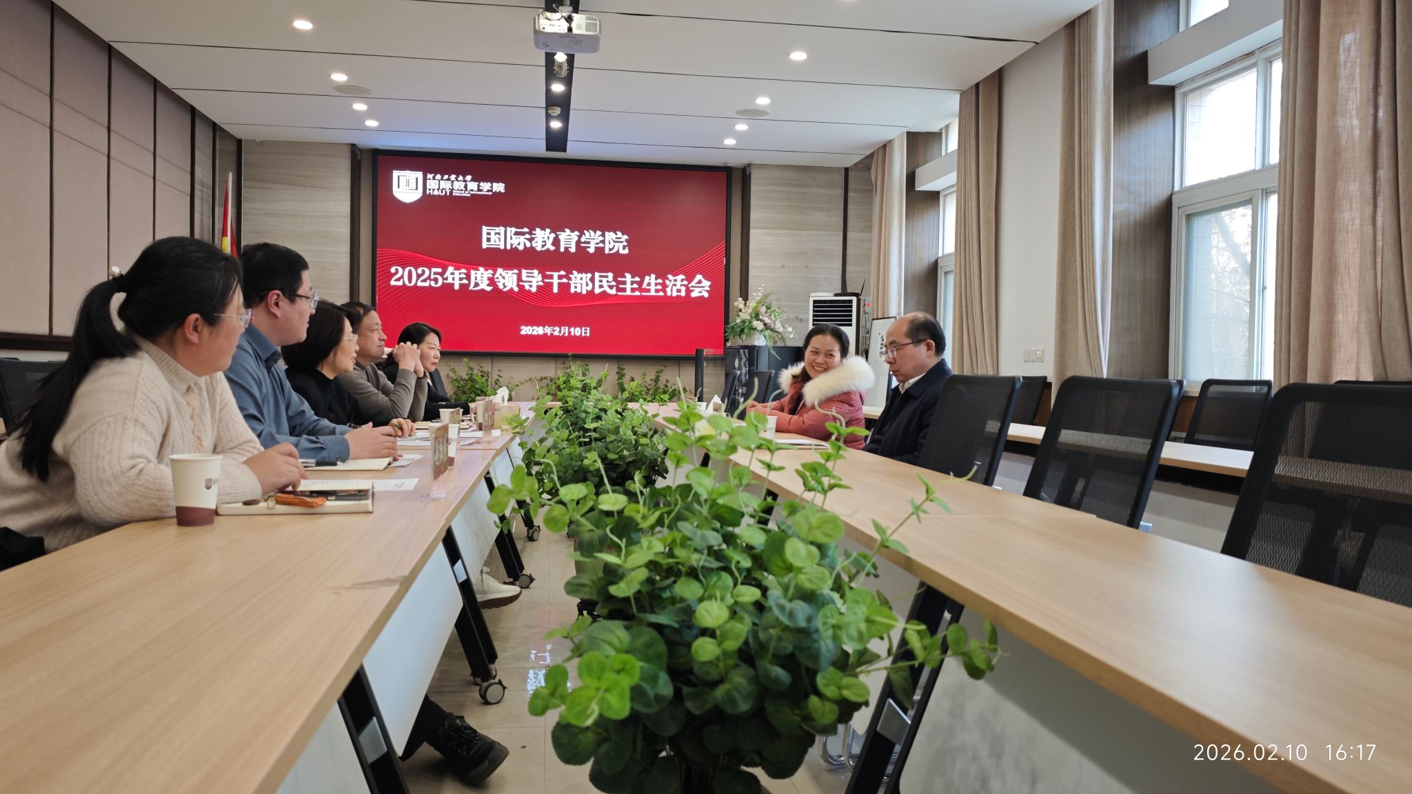2月10日下午,国际教育学院2025年度民主生活会在惟学楼6254会议室召开。副校长赵仁勇莅临会议指导并作点评讲话,党委组织部副部长张芳到会指导,学院党委书记万淼主持会议,学院领导班子成员孙腾、鲍宇茹参加会议,院长张浩军、副院长赵红月列席会议。