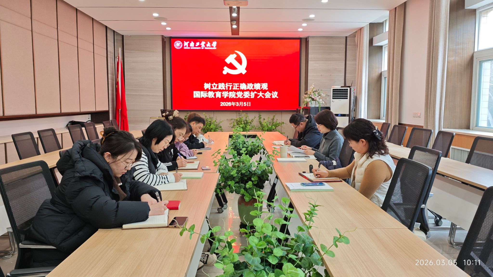 3月5日,国际教育学院在惟学楼6254会议室召开党委扩大会议,专题部署开展树立和践行正确政绩观学习教育。学院党委书记万淼主持会议,学院领导班子成员、全体科级干部参会。