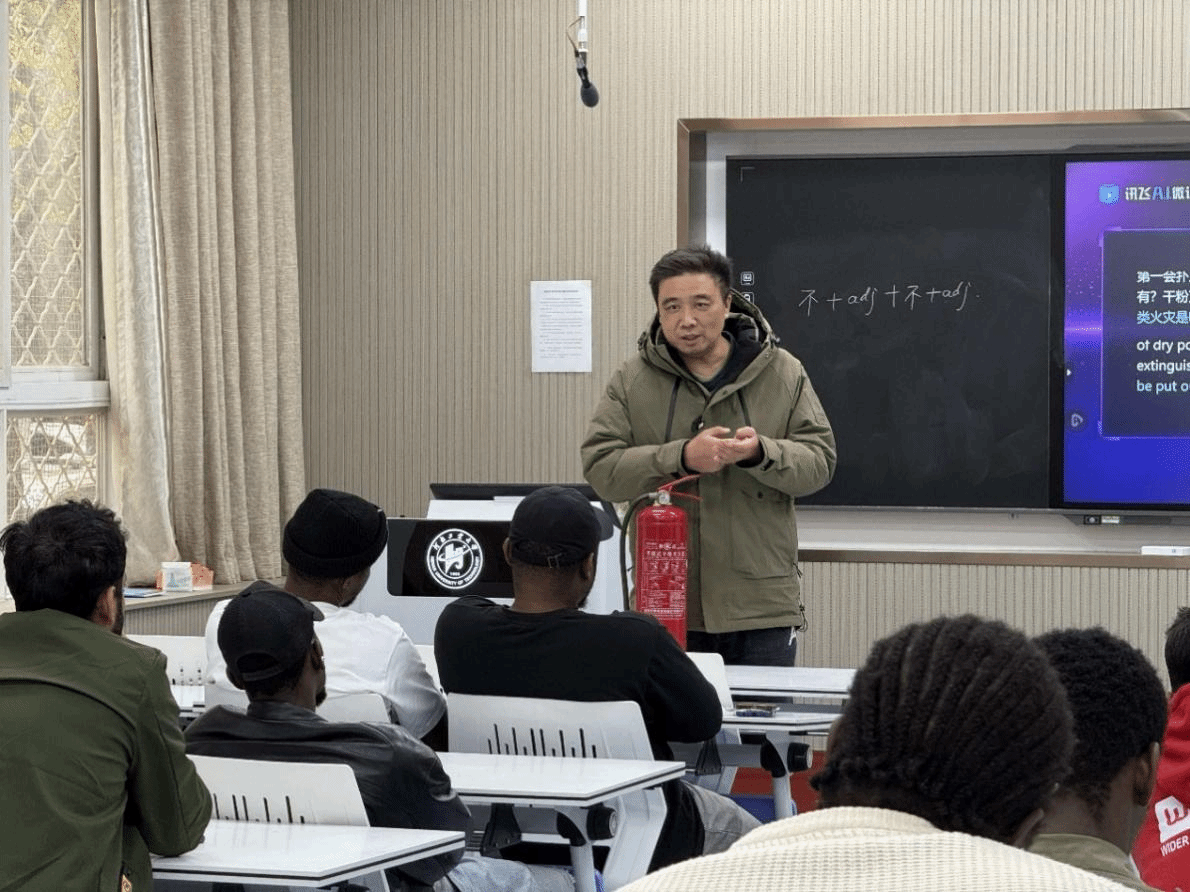 在系统介绍火灾成因与常见起火场所后,消防科教师重点讲解了灭火器与防烟面具的正确使用方法,以及火灾发生时的科学逃生要领。课程内容详实、案例典型,尤其在分析火场逃生策略时,教师分别就火灾初期和火势扩大后的应对措施进行了细致梳理,为留学生提供了实用、清晰的应急指引。