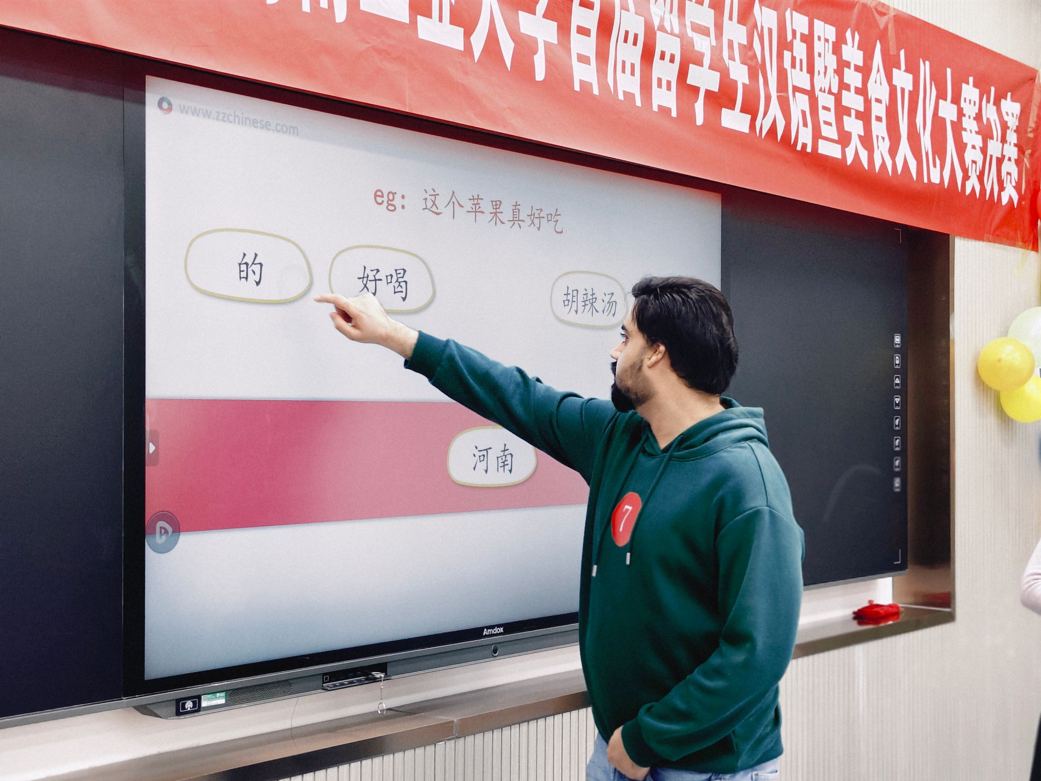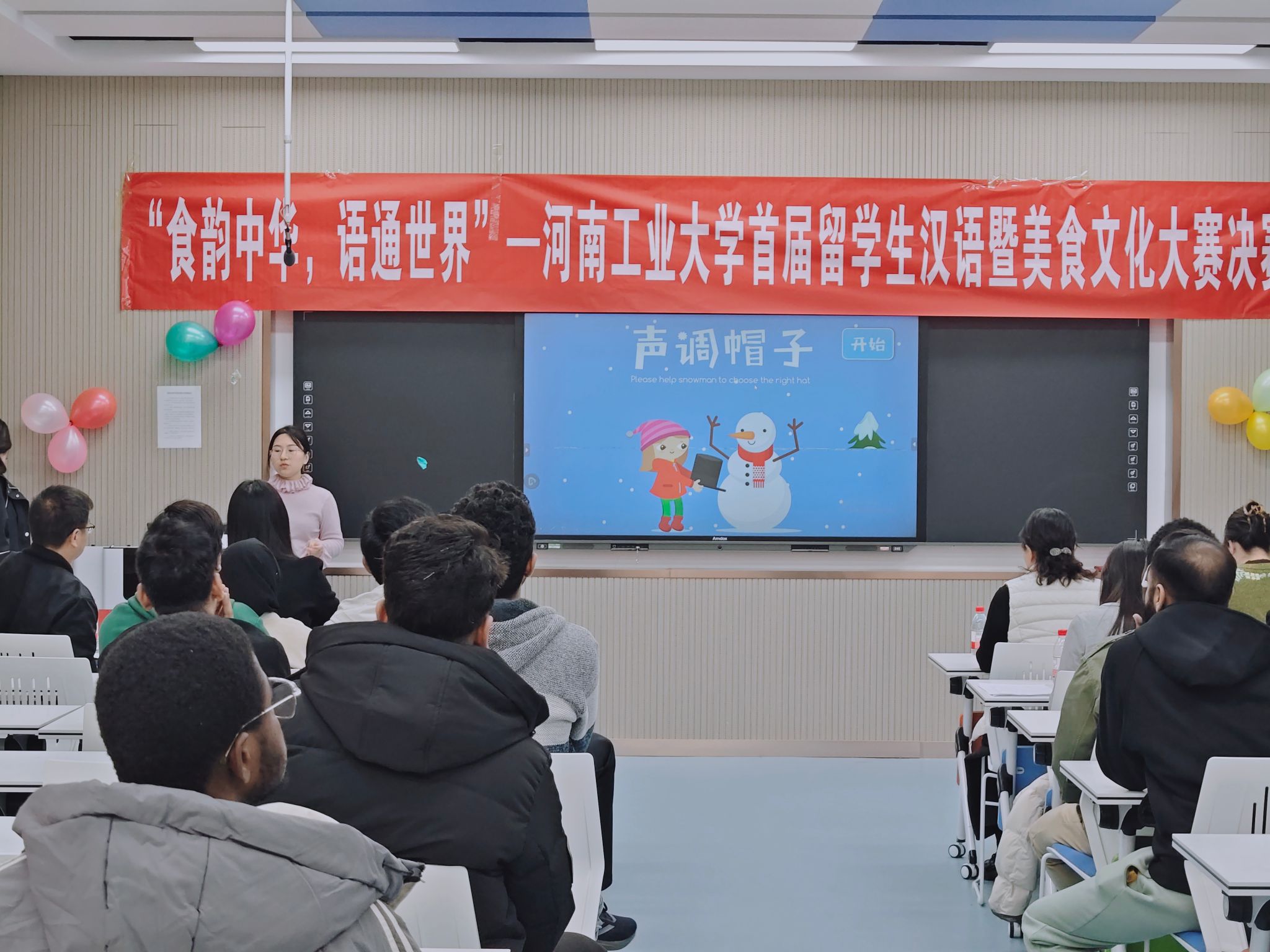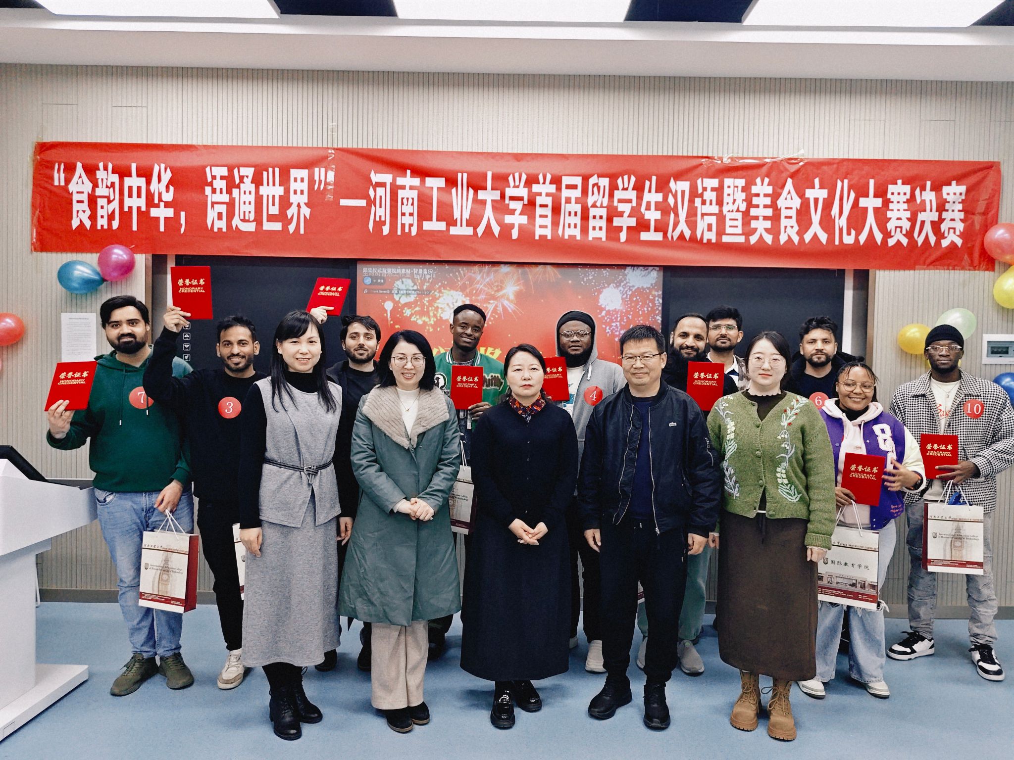 11月25日,由我校国际教育学院与外语学院联合主办的“食韵中华,语通世界”首届留学生汉语暨美食文化大赛决赛在惟学楼6126教室成功举行,担任比赛的评委由国际教育学院副院长鲍宇茹、新闻与传播学院副院长夏颖、外语学院汉语教师蒋智敏、李宗蓥、及留管老师李悦晗共同组成。本次活动旨在以美食为媒、以语言为桥,为在校留学生打造一个沉浸式体验中华文化魅力的独特平台。